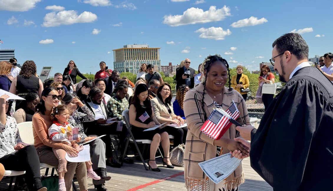 The new citizens all live in New Jersey and were lawful permanent residents (green card holders) prior to becoming citizens and have met the requirements to naturalize, including passing a history and civics exam.